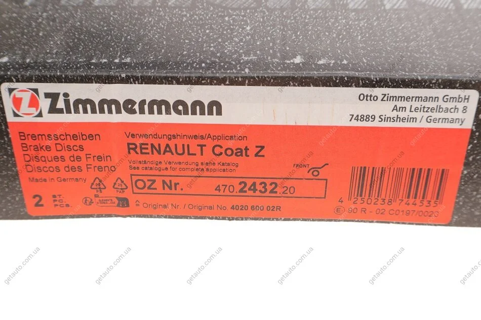 - ZIMMERMANN 470.2432.20 підходить до марок/моделей авто: