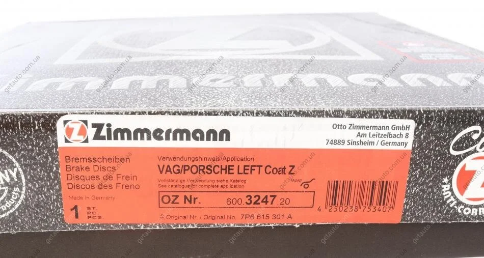 - ZIMMERMANN 600.3247.20 підходить до марок/моделей авто: