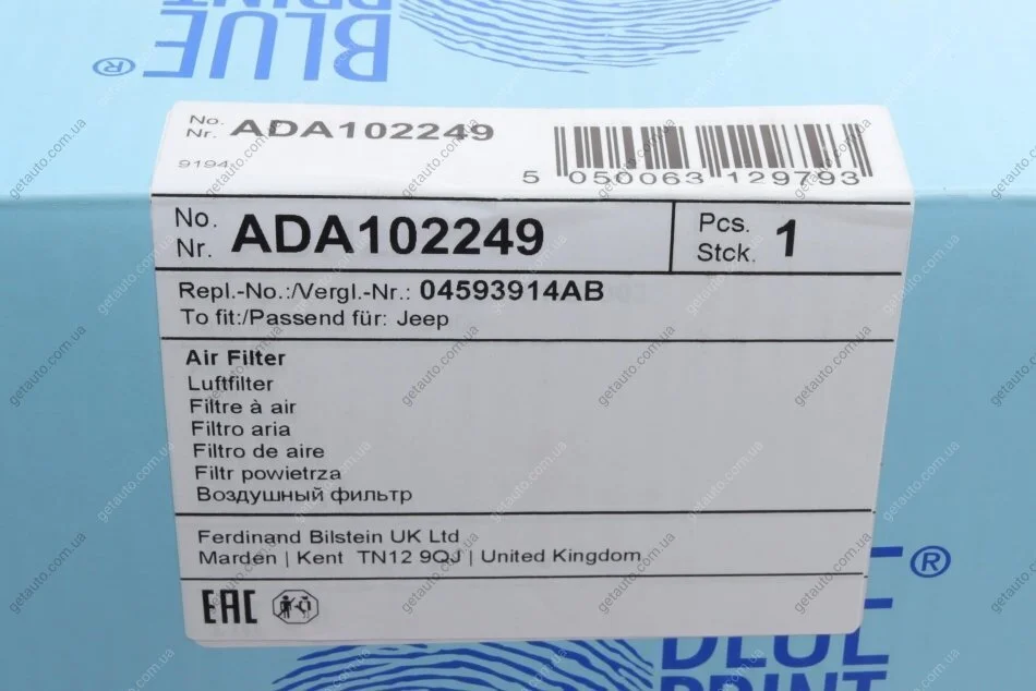 Фільтр повітряний BLUE PRINT ADA102249