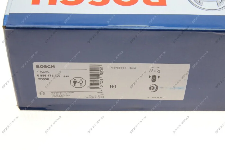 ДИСК ГАЛЬМIВНИЙ ПЕРЕДНIЙ BOSCH 0 986 478 407
