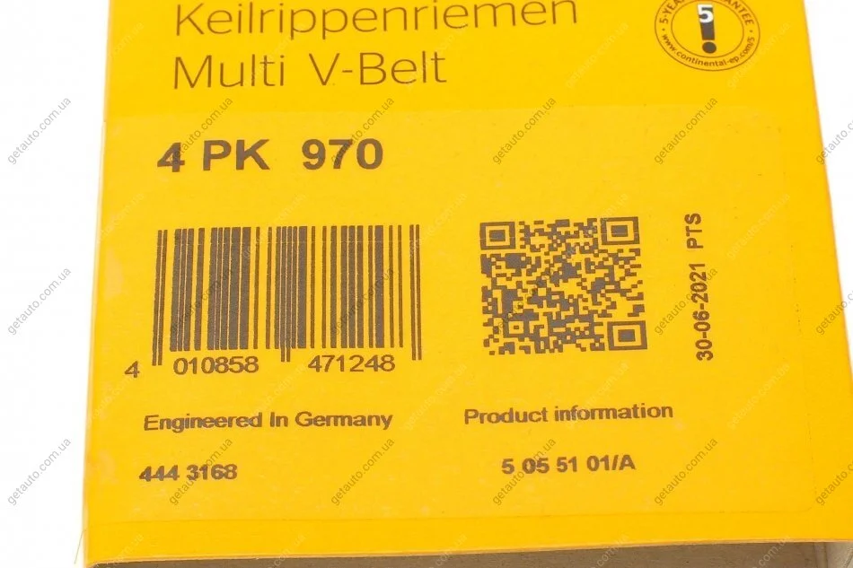 Ремінь генератора поліклиновий Contitech 4PK970