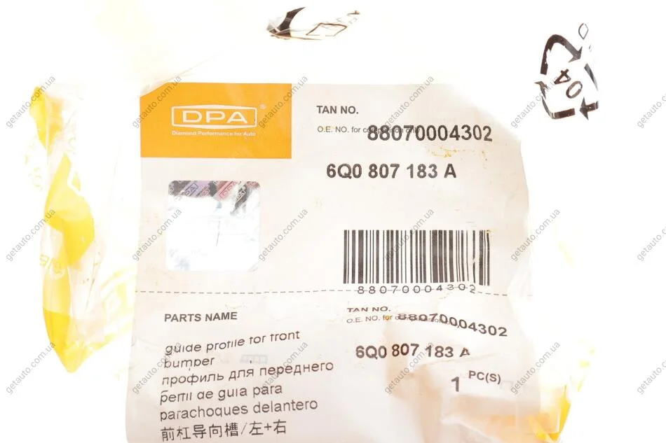 Напрямна переднього бампера (ліва + права) VW Golf (07-09), Polo (05-09,09-14,11-) DPA 88070004302