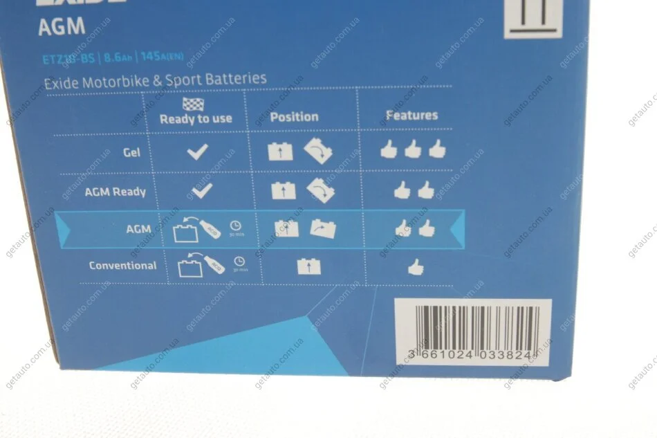 Стартерна батарея (акумулятор) EXIDE ETZ10-BS