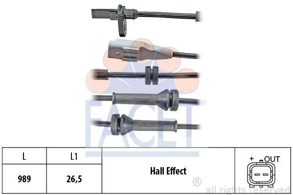 Датчик ABS Citroen BERLINGO/Peugeot 5008, PARTNER 06- задній Л/Пр (21.0096) FACET 210096