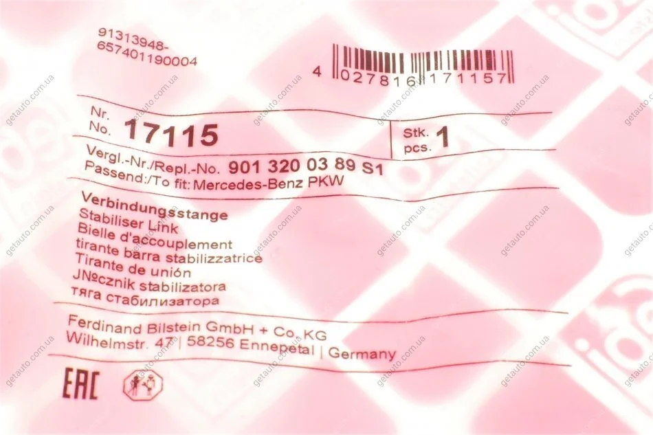 - FEBI BILSTEIN 17115 подходит к маркам/моделям авто: