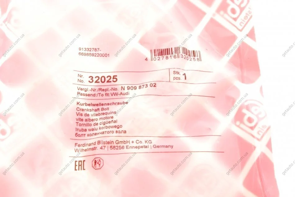 Болт колінчатого валу (з шліцевидною не шестигранною головкою) FEBI BILSTEIN 32025