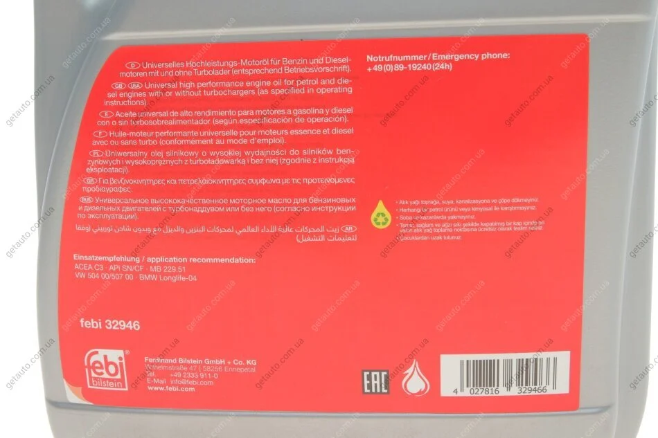 Олива моторна SAE 5W-30 Longlife Plus 4L FEBI BILSTEIN 32946