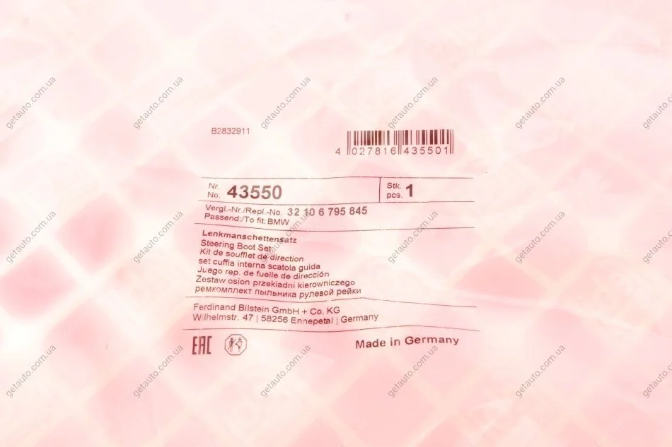 К-т пильника рульової рейки FEBI BILSTEIN 43550