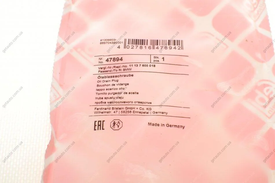 Пробка зливу мастила з ущільненням FEBI BILSTEIN 47894