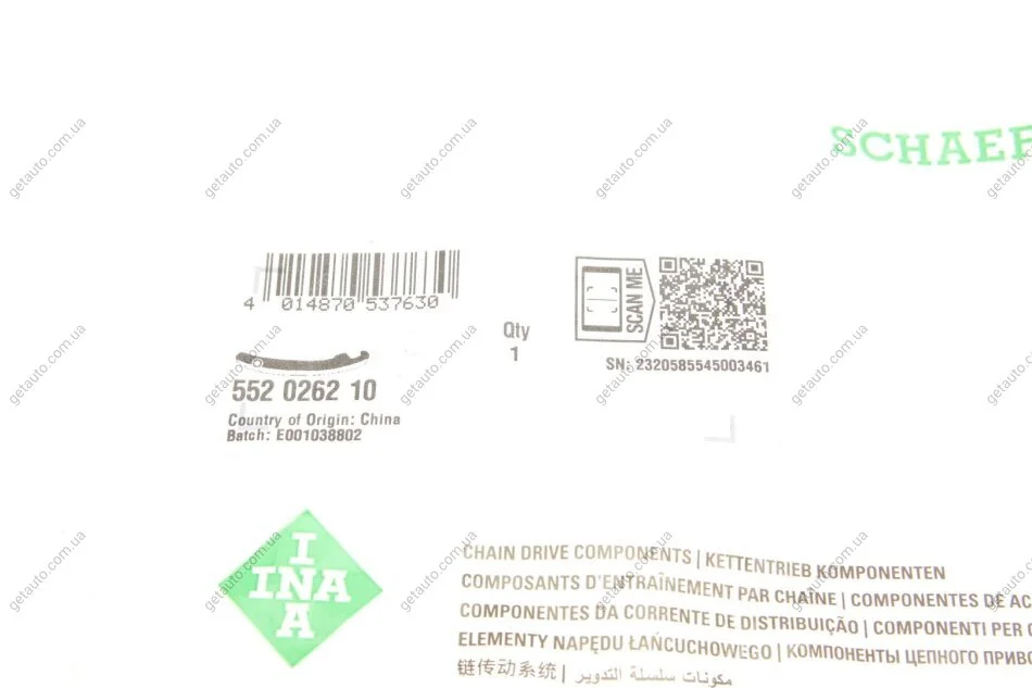 Натяжна планка ланцюга ГРМ INA 552 0262 10