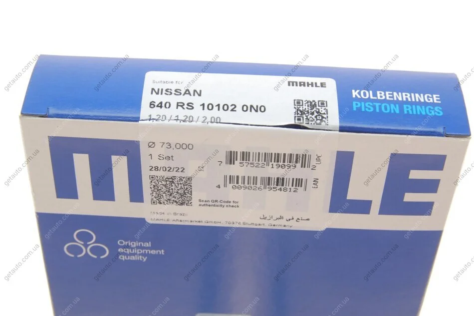 Кільця поршневі MAHLE MAHLE / KNECHT 640 RS 10102 0N0