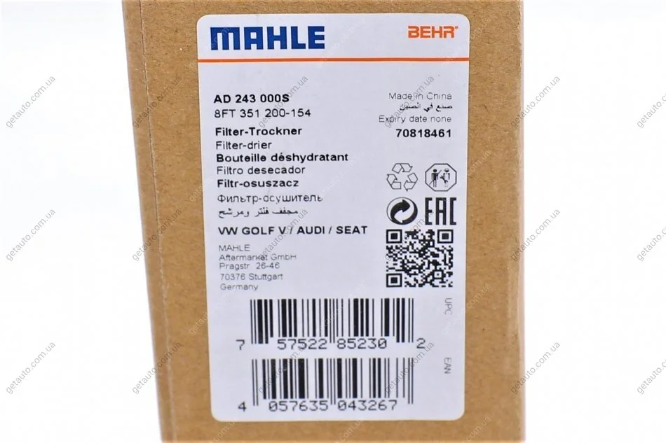 Фільтр-осушувач кондиціонера MAHLE MAHLE / KNECHT AD 243 000S