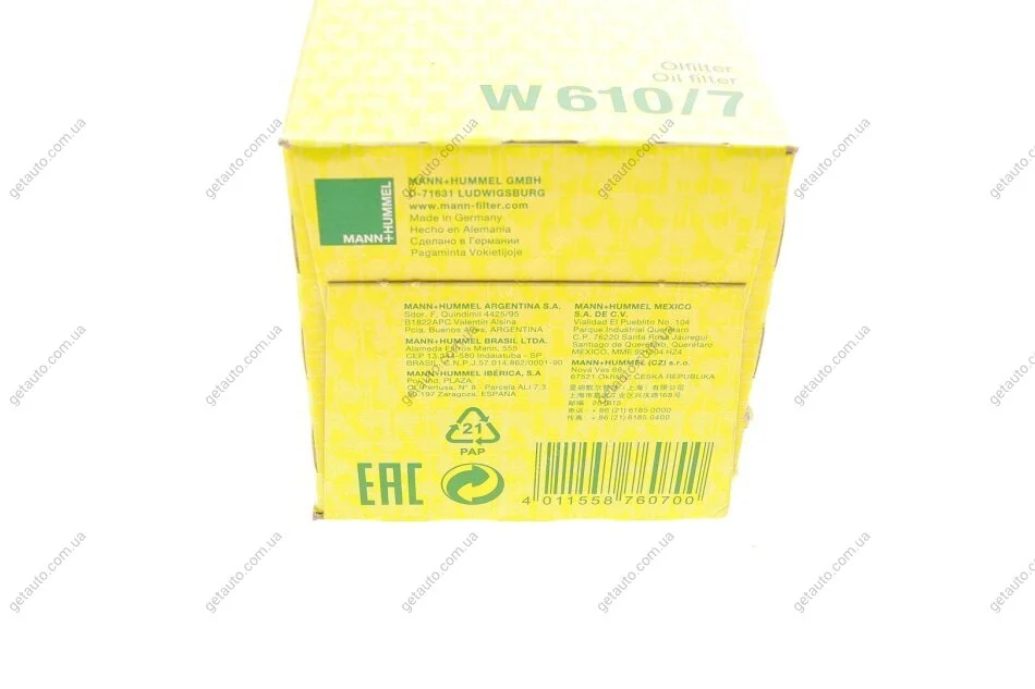 Фільтр масляний -FILTER MANN W 610/7