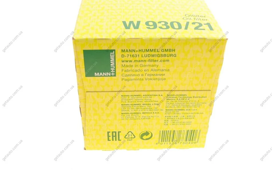 Фільтр масляний -FILTER MANN W 930/21