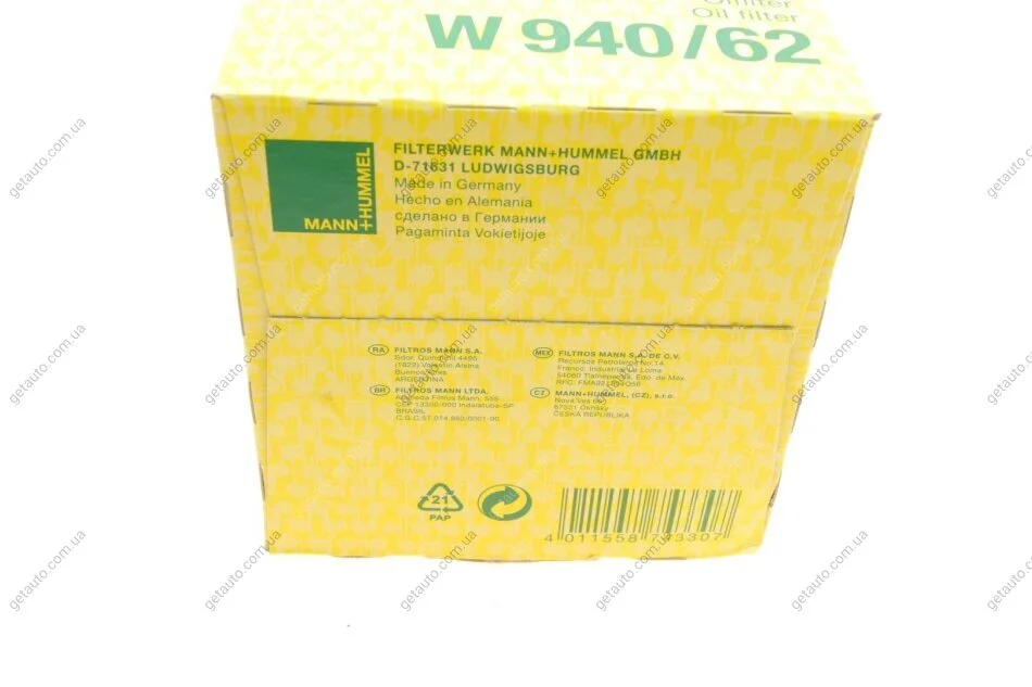 Фільтр масляний -FILTER MANN W 940/62