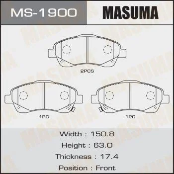 Колодки гальмівні передн Toyota Avensis (03-08) (MS-1900) MASUMA MS1900
