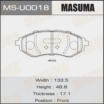Колодки гальмівні (MS-U0018) MASUMA MSU0018