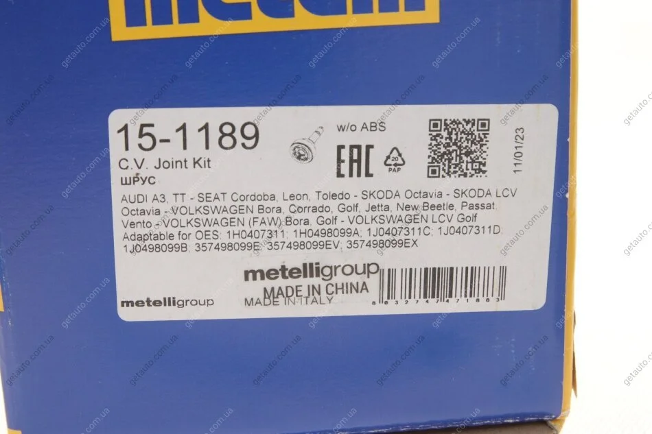 - Metelli 15-1189 подходит к маркам/моделям авто: