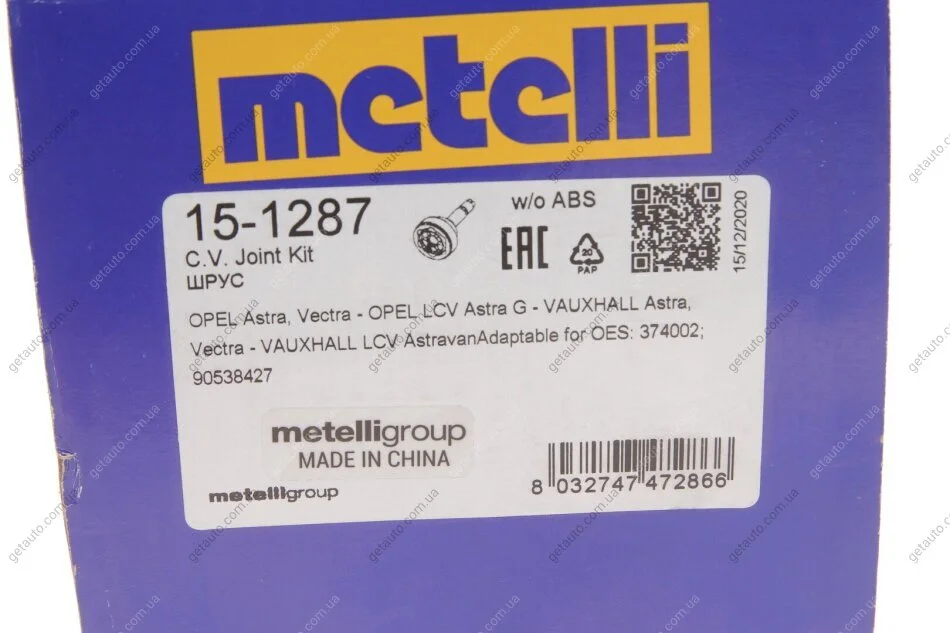 - Metelli 15-1287 подходит к маркам/моделям авто: