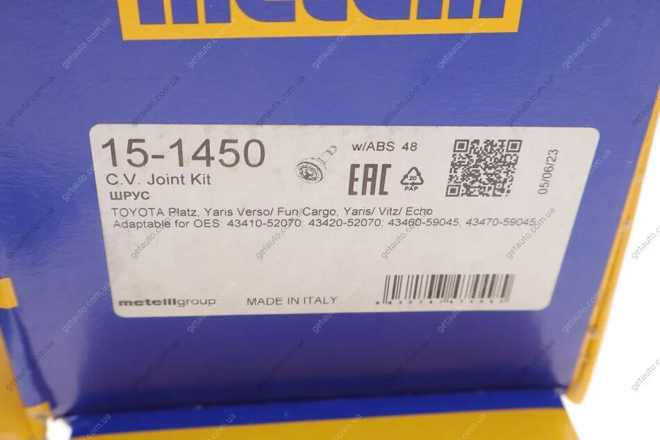 - Metelli 15-1450 подходит к маркам/моделям авто: