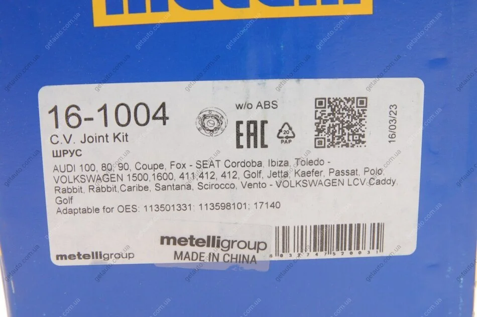 РШ шарнір (комплект) Metelli 16-1004