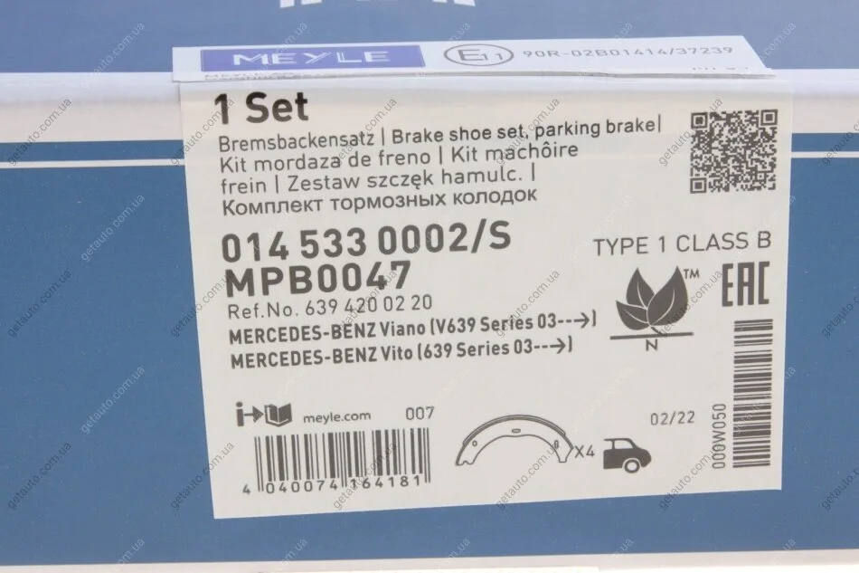 Комплект гальмівних колодок, стояночного гальма MEYLE 014 533 0002/S