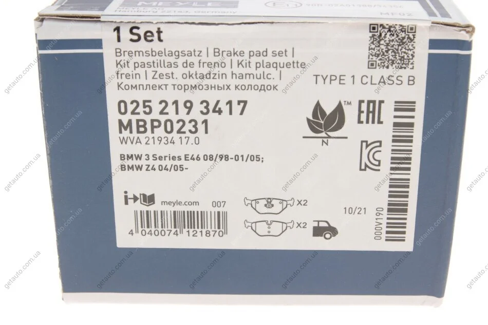 - MEYLE 025 219 3417 подходит к маркам/моделям авто: