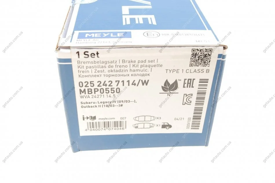 Комплект гальмівних колодок MEYLE 025 242 7114/W