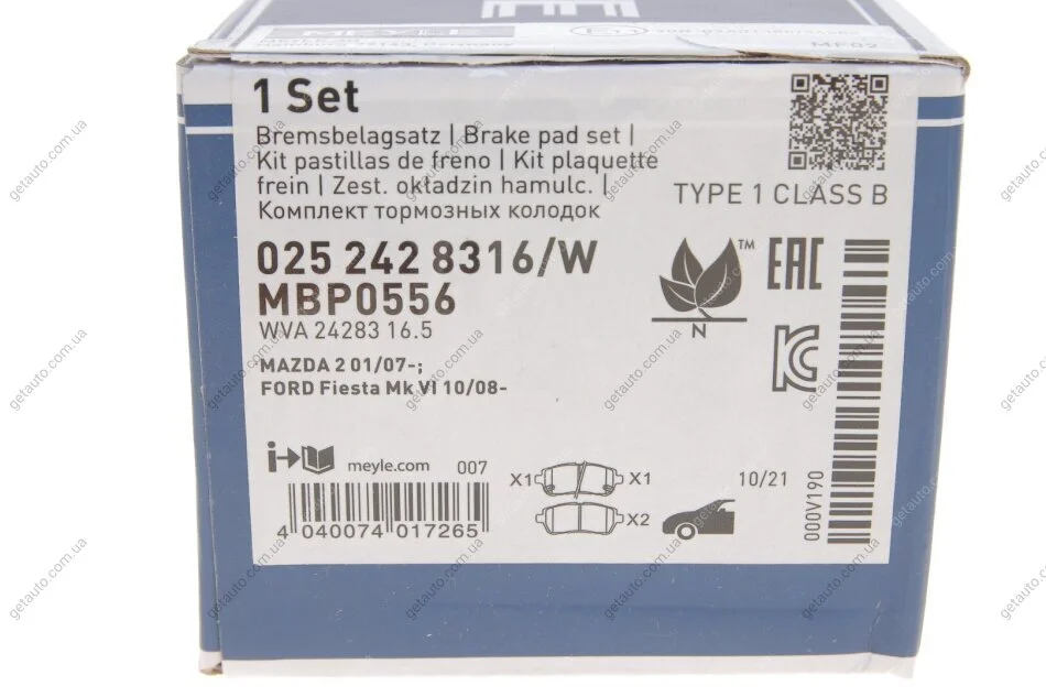 Комплект гальмівних колодок MEYLE 025 242 8316/W