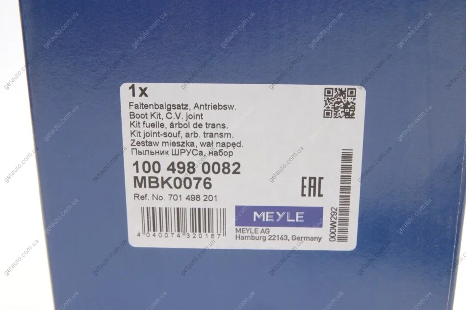 Комплект пильника РШ шарніра MEYLE 100 498 0082