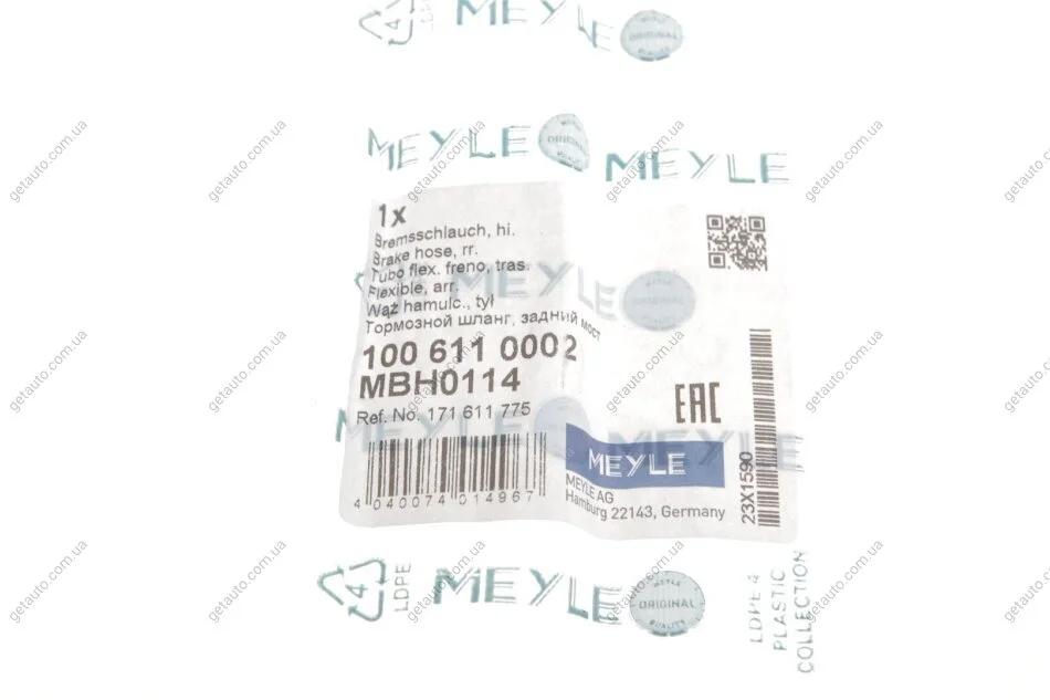 Шланг гальмівний MEYLE 100 611 0002