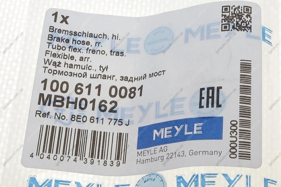 Шланг гальмівний MEYLE 100 611 0081