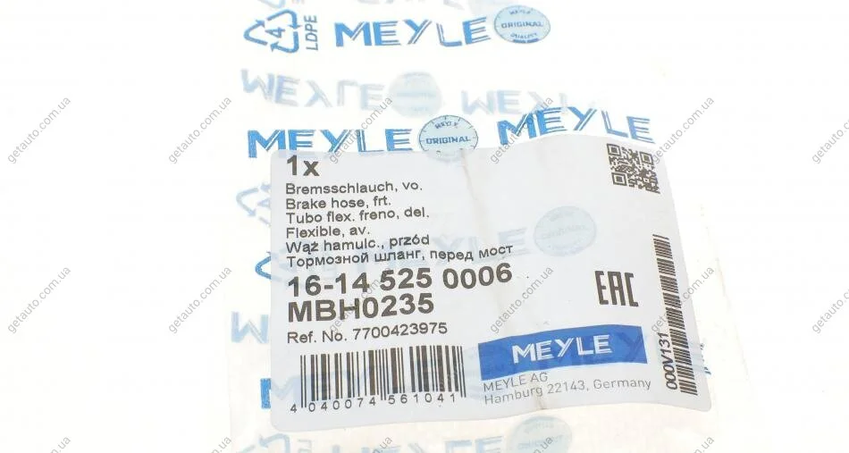 Шланг гальмівний MEYLE 16-14 525 0006