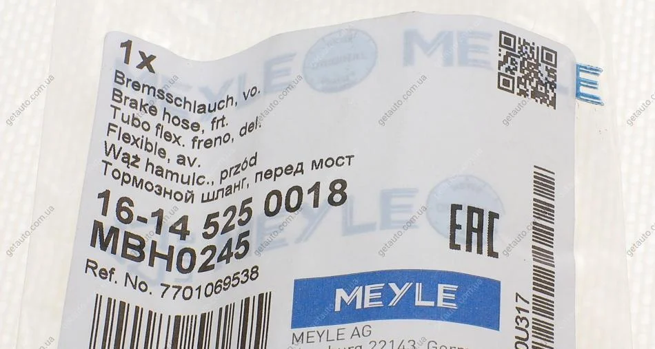 Шланг гальмівний MEYLE 16-14 525 0018