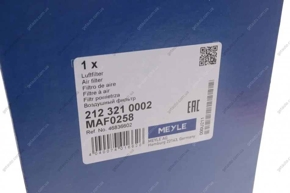 Фільтр повітряний MEYLE 212 321 0002