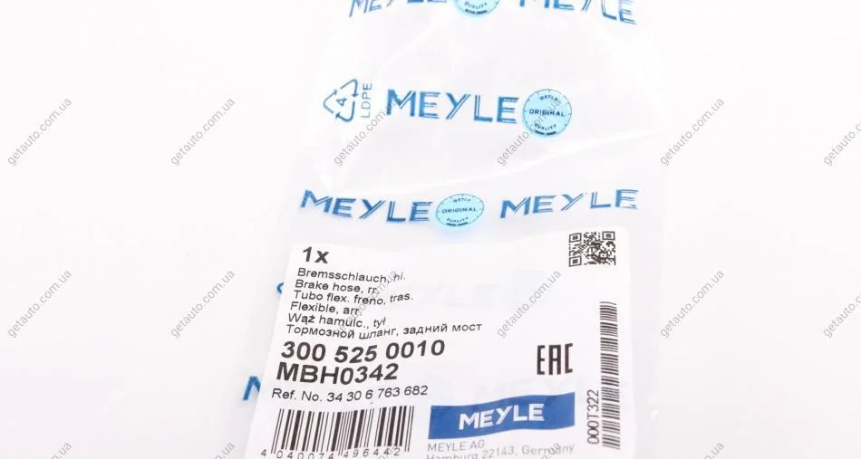 Шланг гальмівний MEYLE 300 525 0010
