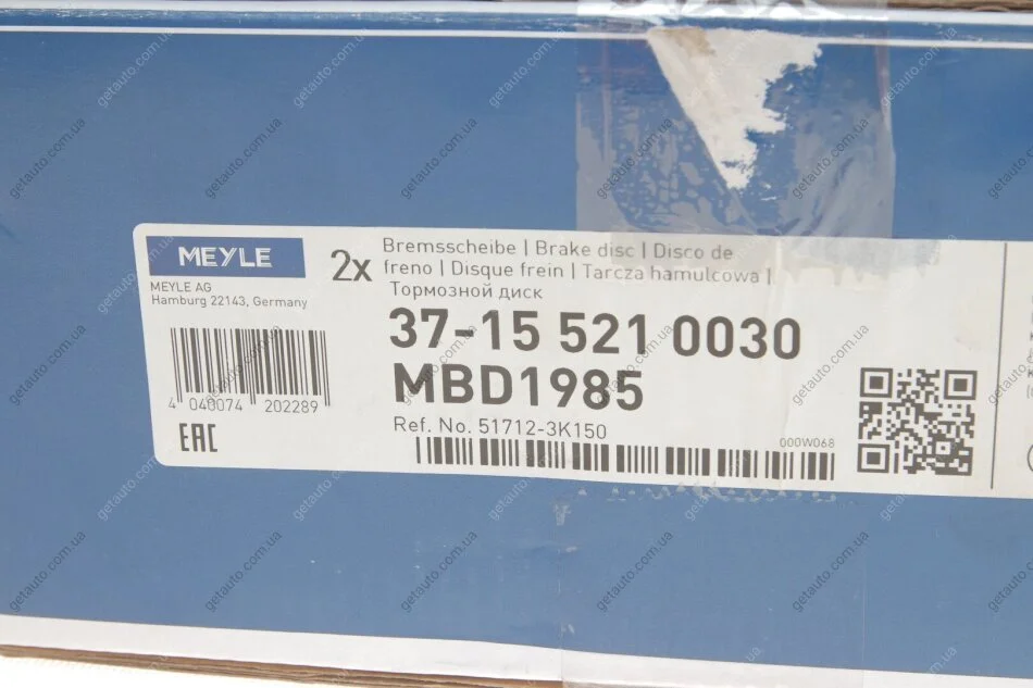 Диск гальмівний MEYLE 37-15 521 0030