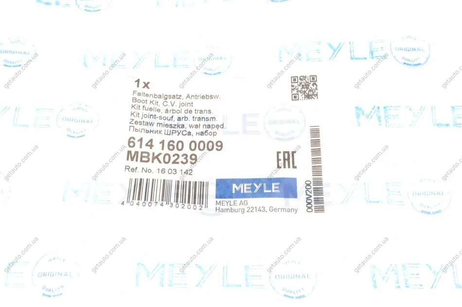 Комплект пильника РШ шарніра MEYLE 614 160 0009