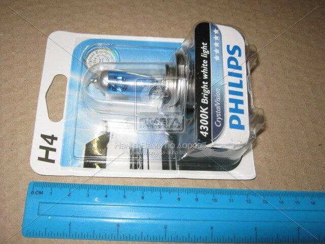 Лампа розжарювання H4 12V 60/55W P43t-38 Cristal Vision 1шт blister 4300K PHILIPS 12342CVB1