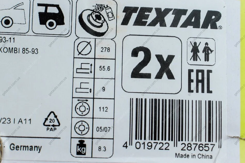 - TEXTAR 92032703 подходит к маркам/моделям авто: