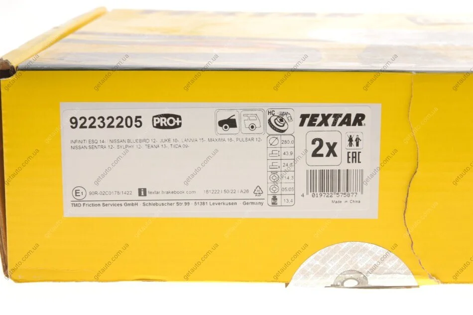 - TEXTAR 92232205 подходит к маркам/моделям авто: