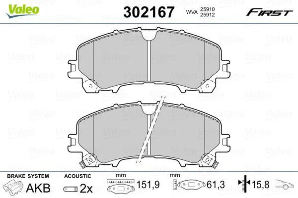 Гальмівні колодки дискові INFINITI/NISSAN/RENAULT Koleos/Q50/Q60/X-trail "1,5-3,5 "F "13>> Valeo 302167