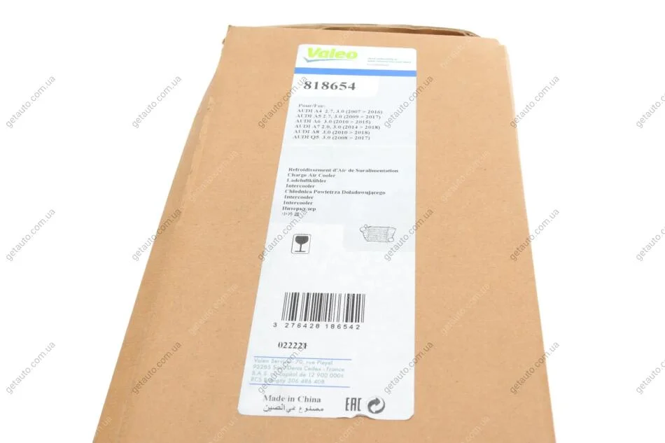Радіатор (інтеркулер) охолодження повітря в системі наддуву Valeo 818654
