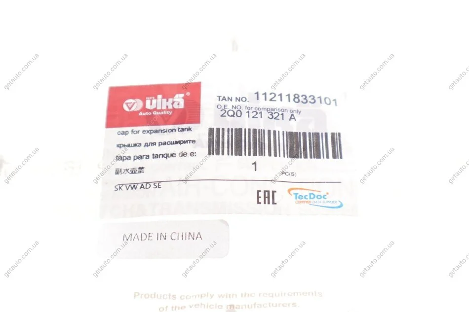 Кришка бачка розширення охолоджуючої рідини Vika 11211833101
